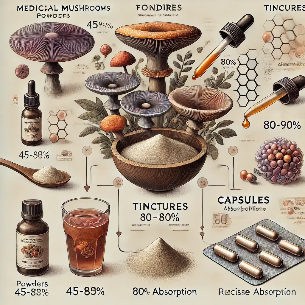 Explore the bioavailability differences between medicinal mushroom powders, tinctures, and capsules to maximize health benefits…